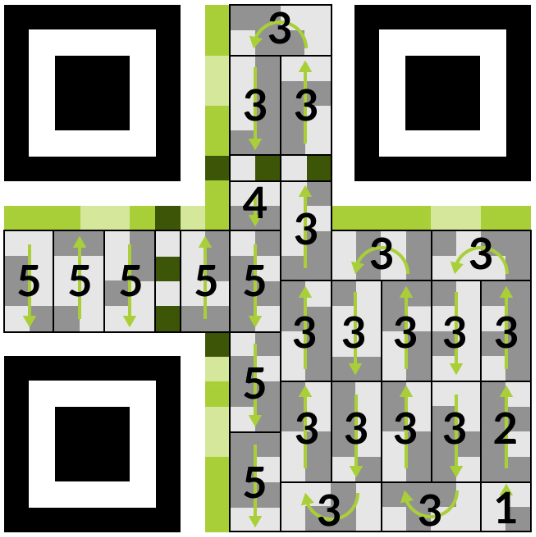 All the following information is encoded in the form of black and white squares as we discussed in the previous section.
